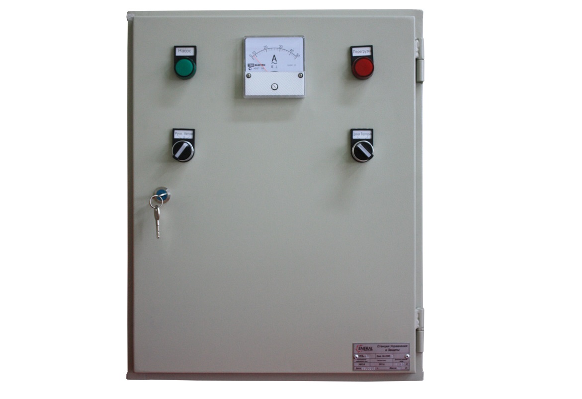 Станции управления и защиты (СУЗ) ENERAL предназначены для автоматического, дистанционного или местного регулирования трехфазных двигателей погружных насосов. Основная задача – защита насосов от различных аварийных состояний. При работе насосных агрегатов могут возникать перегрузки по току, отсутствие воды в скважине, обрыв фазы двигателя. Принцип работы СУЗ основан на обработке сигналов датчиков уровня воды, датчиков давления и «сухого хода» микроконтроллером, который выдает в автоматическом режиме сигнал на запуск или остановку электродвигателя насосного агрегата. Станция выполняет автоматическое отключение электродвигателя в любой из ситуаций. Во всех случаях предусмотрена световая аварийная сигнализация. СУЗ также обеспечивает восстановление режима работы после прекращения аварийного воздействия, а также индикацию потребляемого тока электродвигателя.